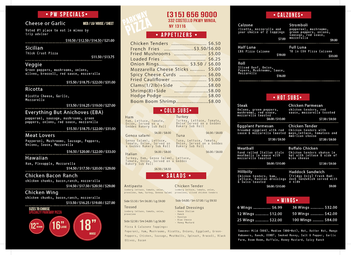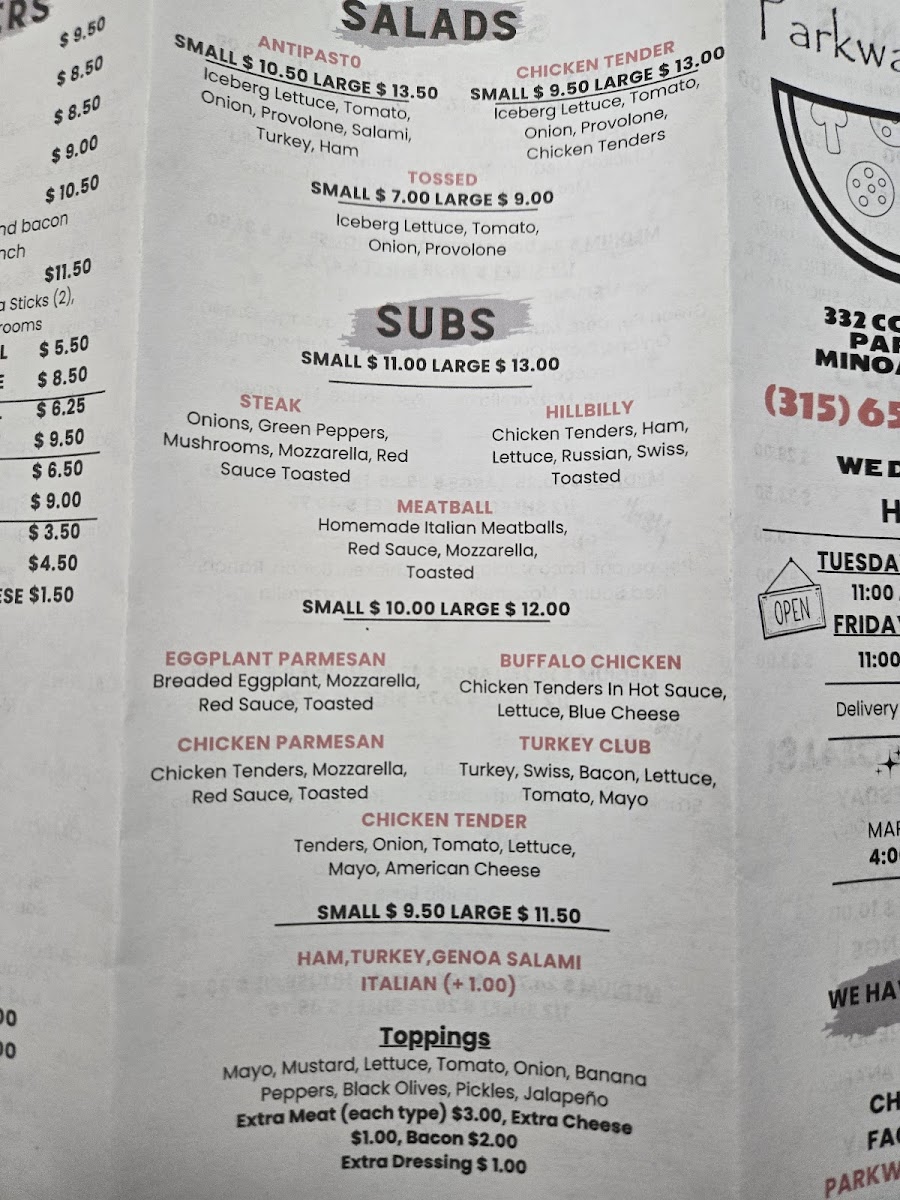 Located at 332 Costello Pkwy, Minoa, NY, Parkway Pizza Minoa stands out as a beloved local gem. This vibrant eatery, praised for its passion and warm service, offers a menu filled with mouthwatering options that keep customers coming back. The highlight is undoubtedly their pizza, with slices described as generously sized and reasonably priced, making for a perfect quick lunch or dinner option.